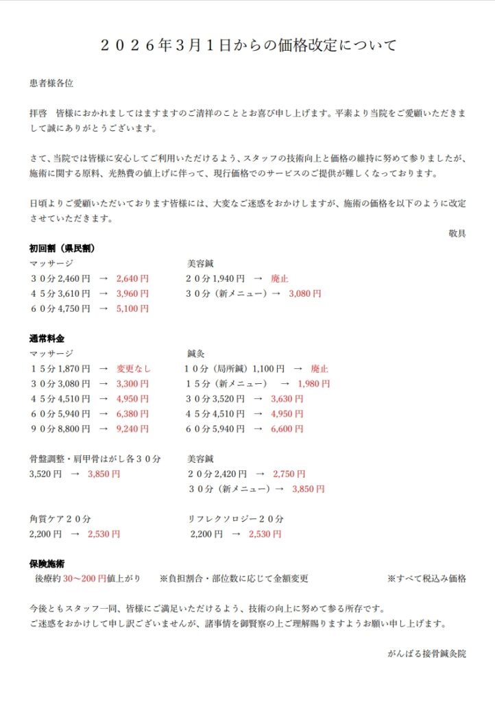 3月1日から価格改定を行います