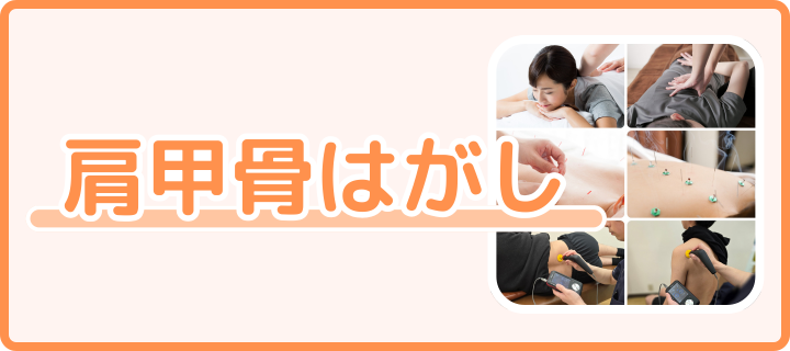 「腕が上がらない」「首や肩が痛い」といった症状に対して、肩甲骨周辺の筋肉の滑走性を上げることで可動域を拡げ、症状を軽減・改善することを目的とした施術です。