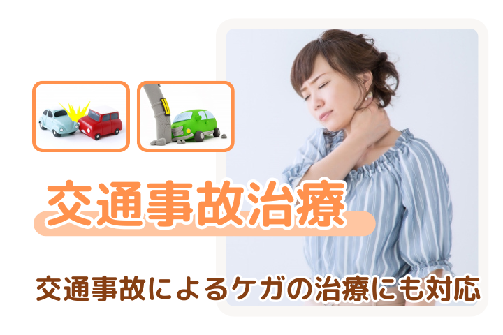 交通事故に遭われた時に、事故によって生じたムチ打ちや腰痛などのケガに対して行う専門的な施術のことを指します。保険会社の許可を取り、自己負担なしで治療する事が出来ます。
