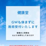 - ~GW 受付時間のお知らせ~こんにちは!健康堂接骨鍼灸マッサージ院です! 今回はゴールデンウイークの受付時間についてお知らせします。 4月30日 5月1日、2日 9:00~13:00 15:00~20:00まで 4月29日 5月3日、4日、5 […]