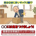 - 寝たきりGWはもう卒業。連休を120%楽しむためのぎっくり腰を防ぐ3つの鉄則こんにちは!京成青砥駅から2分の健康堂接骨鍼灸マッサージ院です。 いよいよ待ちに待ったゴールデンウィークが近づいてきましたね。 「この連休中に庭を綺麗にしたい!」「溜まった粗大ゴミを片付けたい!」と意気込んでいる方も多い […]