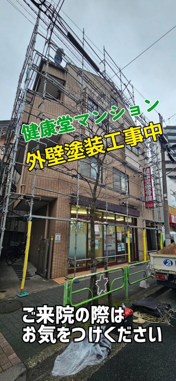現在、当院が入居しております「健康堂マンション」の外壁工事に伴い、建物周囲に工事用足場が設置されております。🚧