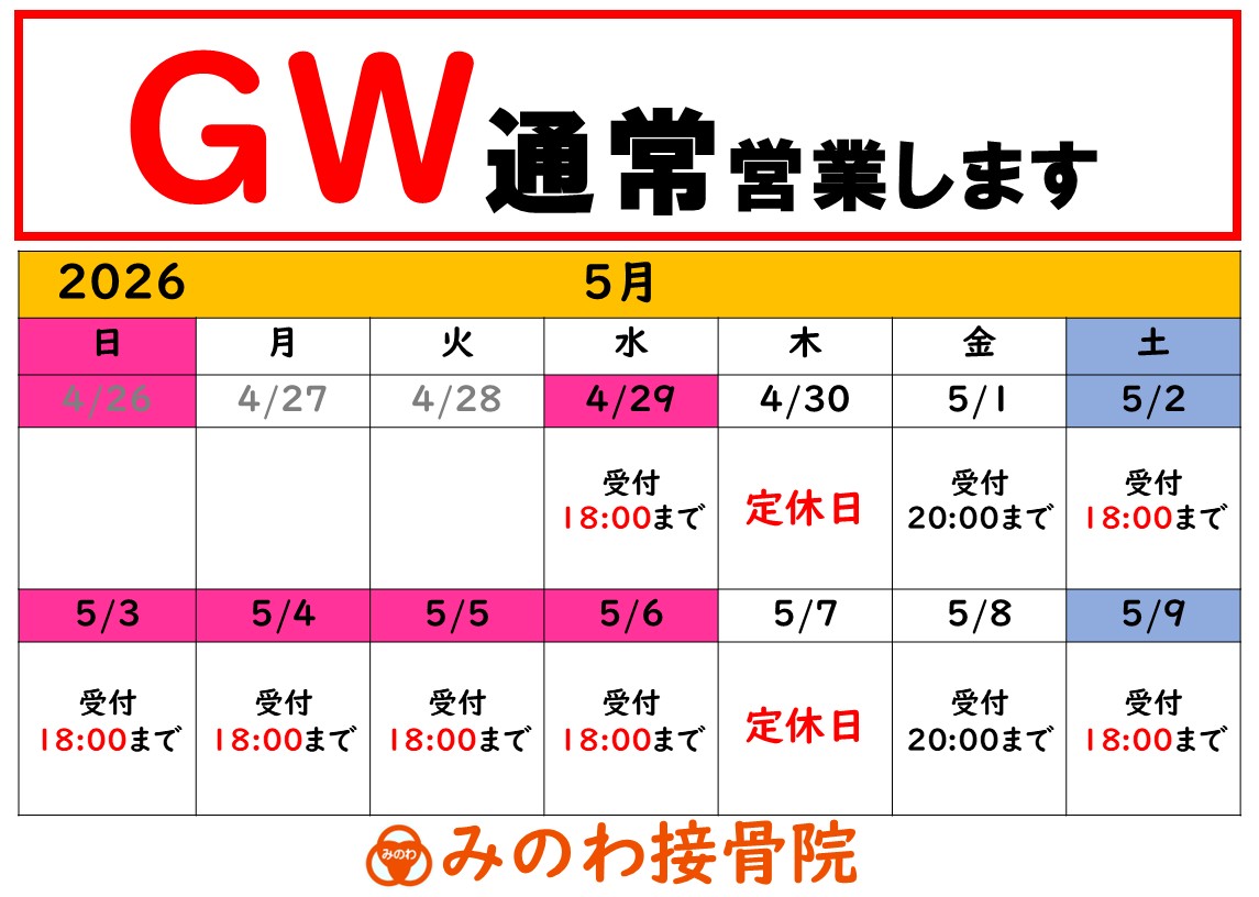 ゴールデンウィーク期間中の営業についてのお知らせです。