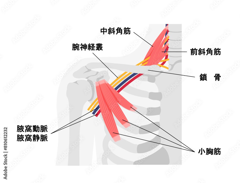 - 首の前側にある筋肉。硬くなると神経・血管を圧迫します。
