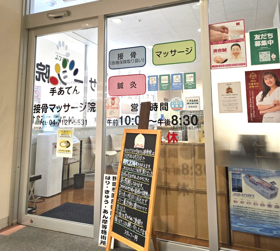 手あてん野田接骨院は、千葉県野田市七光台、イオンタウン野田七光台 メディカルモール2階 にあります。