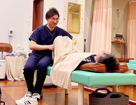 診療内容:柔整施術、鍼灸治療、マッサージ、ボディケア、交通事故治療、訪問マッサージ、美容鍼