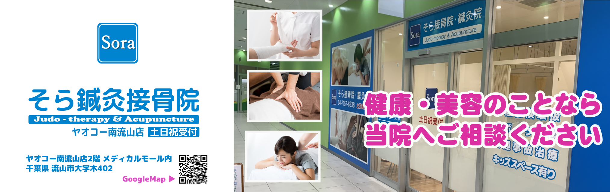 2021年12月1日、そら鍼灸接骨院がヤオコー南流山店2階クリニックモール内にオープンしました!
