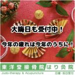 - 大晦日も受付しています!平素より 東洋堂接骨・はり灸院 をご利用いただき、誠にありがとうございます。 2025年も残すところわずかとなりました。 本年も多くの患者様にご来院いただき、スタッフ一同、心より感謝申し上げます。 当院では「体をニュート […]