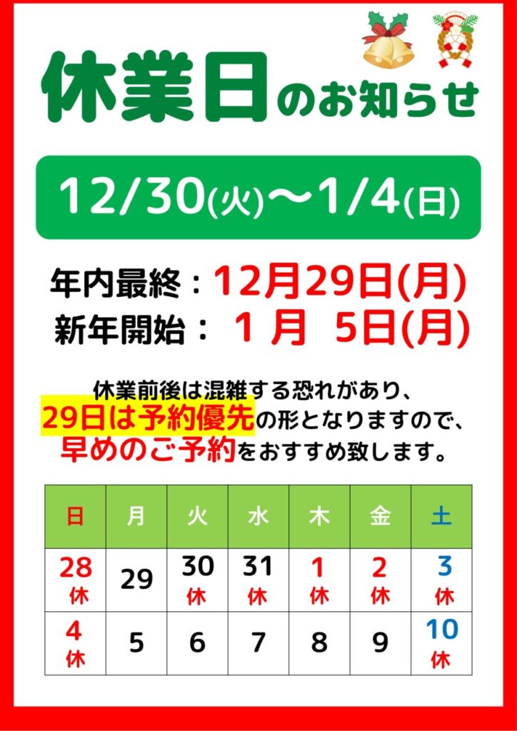 休業日前後、特に最終営業日の29日はご予約が集中しやすい傾向にございます。